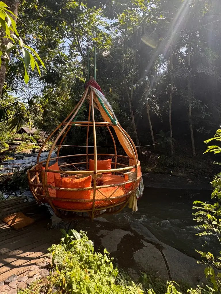 Bambu Indah has a floating bale / river pod where guests can enjoy a meal while suspended above the Ayung River. This one-of-a-kind offering (one of many unique experiences at the resort) requires an additional fee. Check with the front desk for availability and pricing.